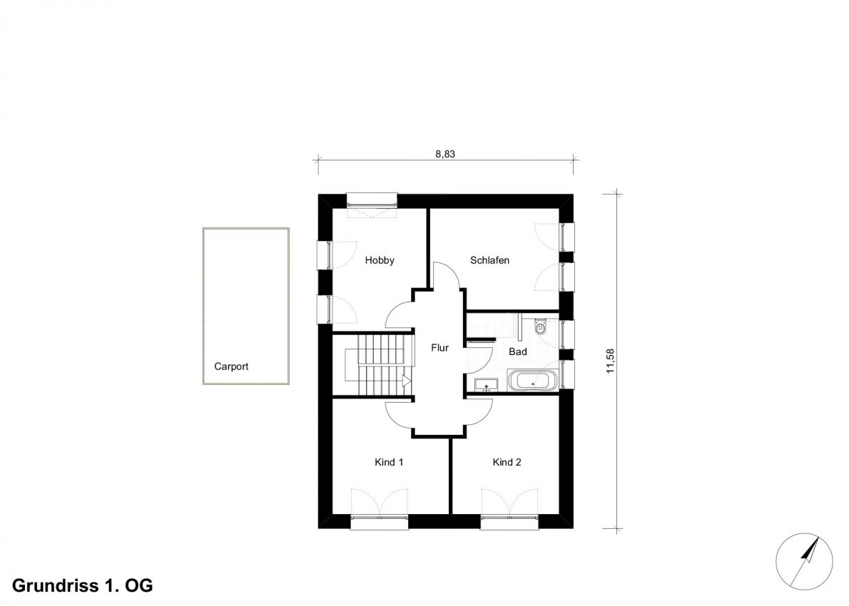 Dem Bauherrenwunsch nach einem kompakten Haus mit rationalen Grundriss wurde durch die kubische Formgebung entsprochen.
