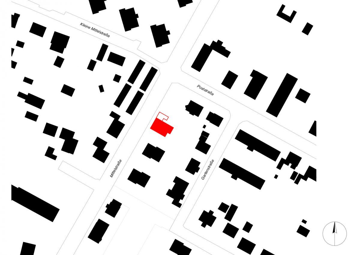 Das Gebäude fügt sich als Ergänzung in die lockere Struktur aus Einfamilienhäusern des Ortes ein und füllt eine zuvor mit Gartenland belegte Lücke im Gebäudebestand.