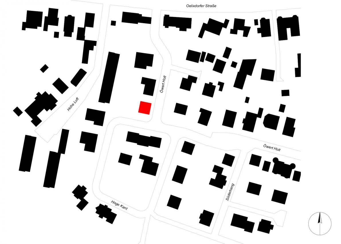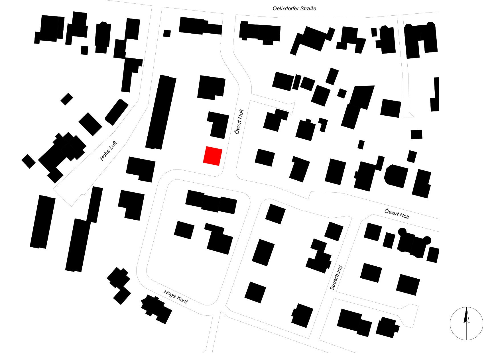 Das Gebäude entspricht der Struktur aus Einzelhäusern in dem Neubaugebiet hinter den Grundstücken an der Oelixdorfer Straße.