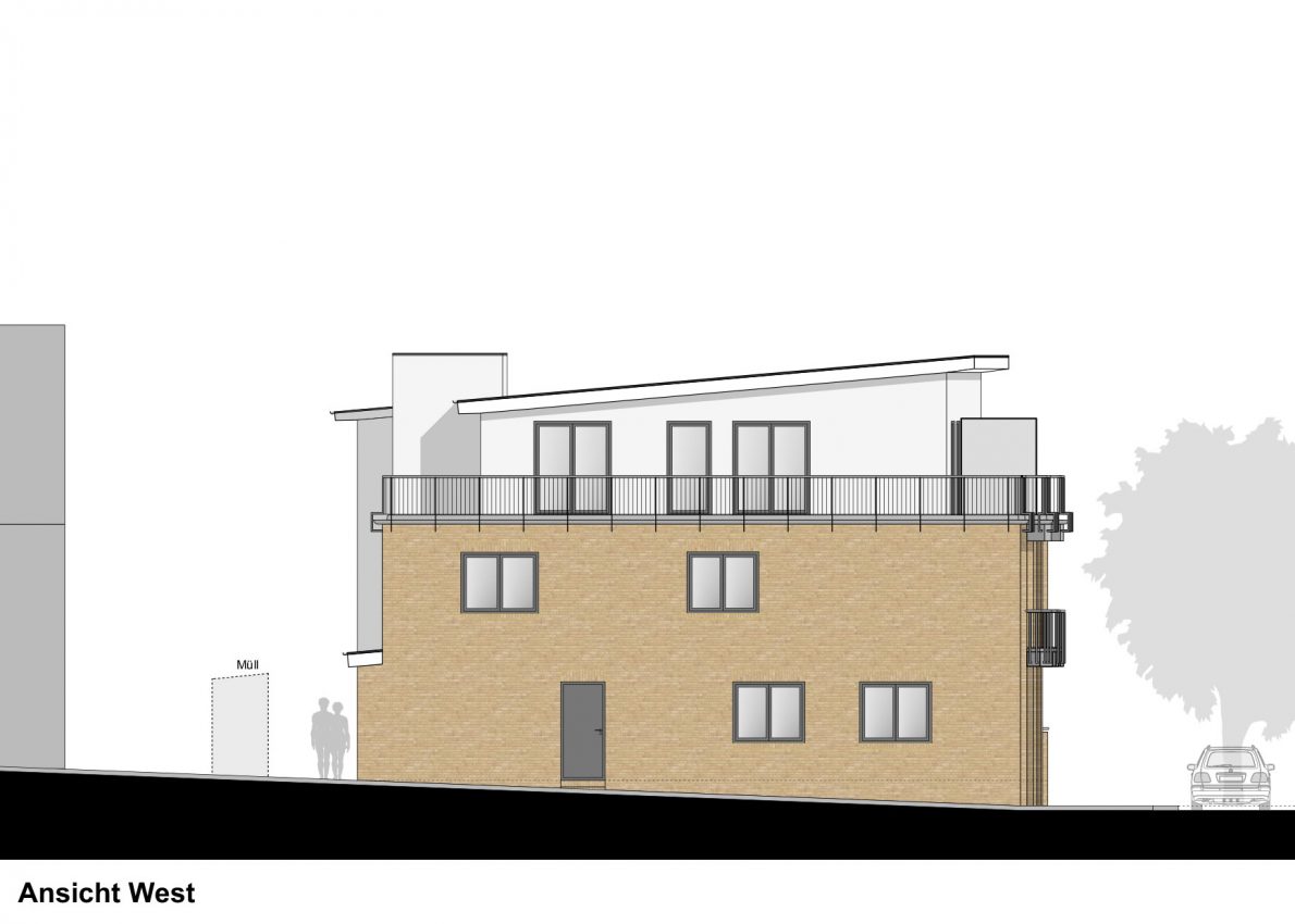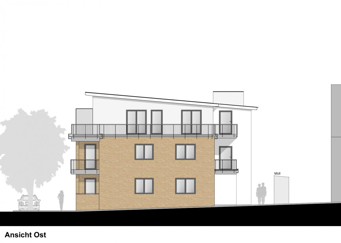 Das neue Gebäude bietet derzeit Platz für 5 Eigentumswohnungen. Im Erdgeschoss wurde eine gewerbliche Nutzung vorgesehen, die bei Bedarf in 2 Wohnungen umgewandelt werden kann.