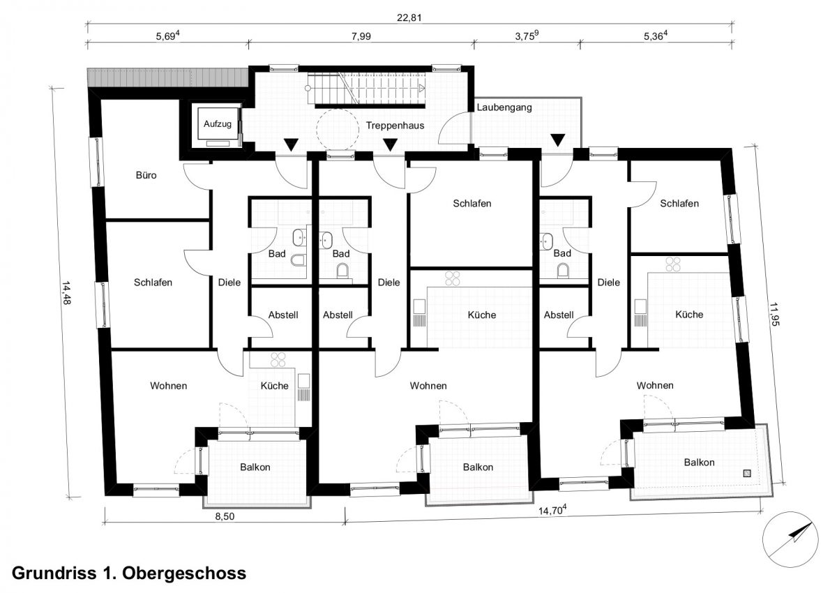 Alle Wohnungen sind über einen Aufzug erreichbar.