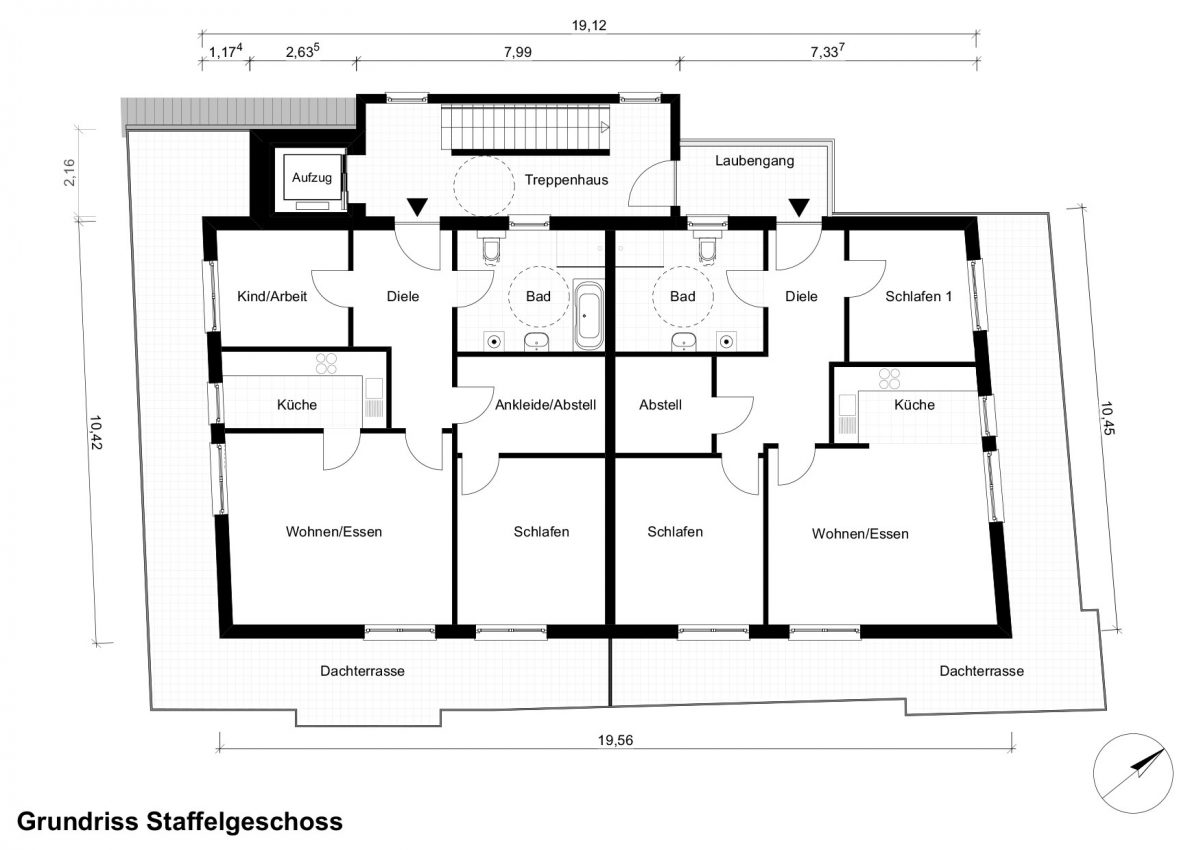 Die großzügigen Wohnungen im Staffelgeschoss sind von langen Dachterrassen umgeben.