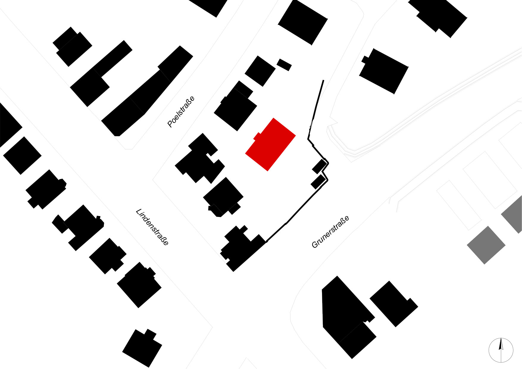 Das Baugelände liegt am Rande der Innenstadt von Itzehoe, umgeben von einem Gebiet mit Einzelhäusern und Gärten.